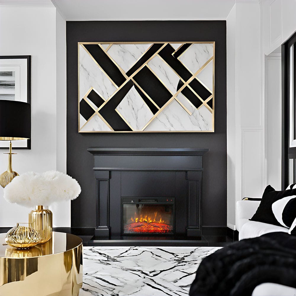 Semineu electric 3D ElectricSun Marisa negru mat, cu sunet, 3 culori, Wi-Fi cu APP internet, L120xH102cm
