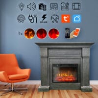 Semineu electric 3D ElectricSun MONTENEGRO gri, cu sunet, 3 culori, Wi-Fi cu APP internet, L127xH107cm