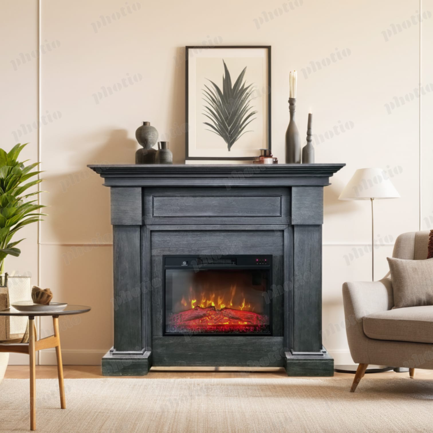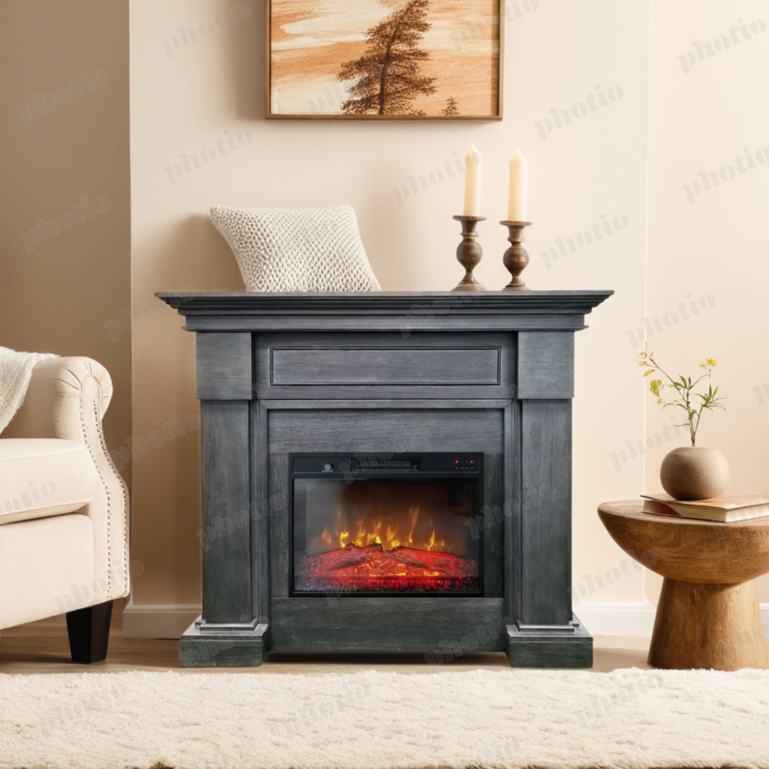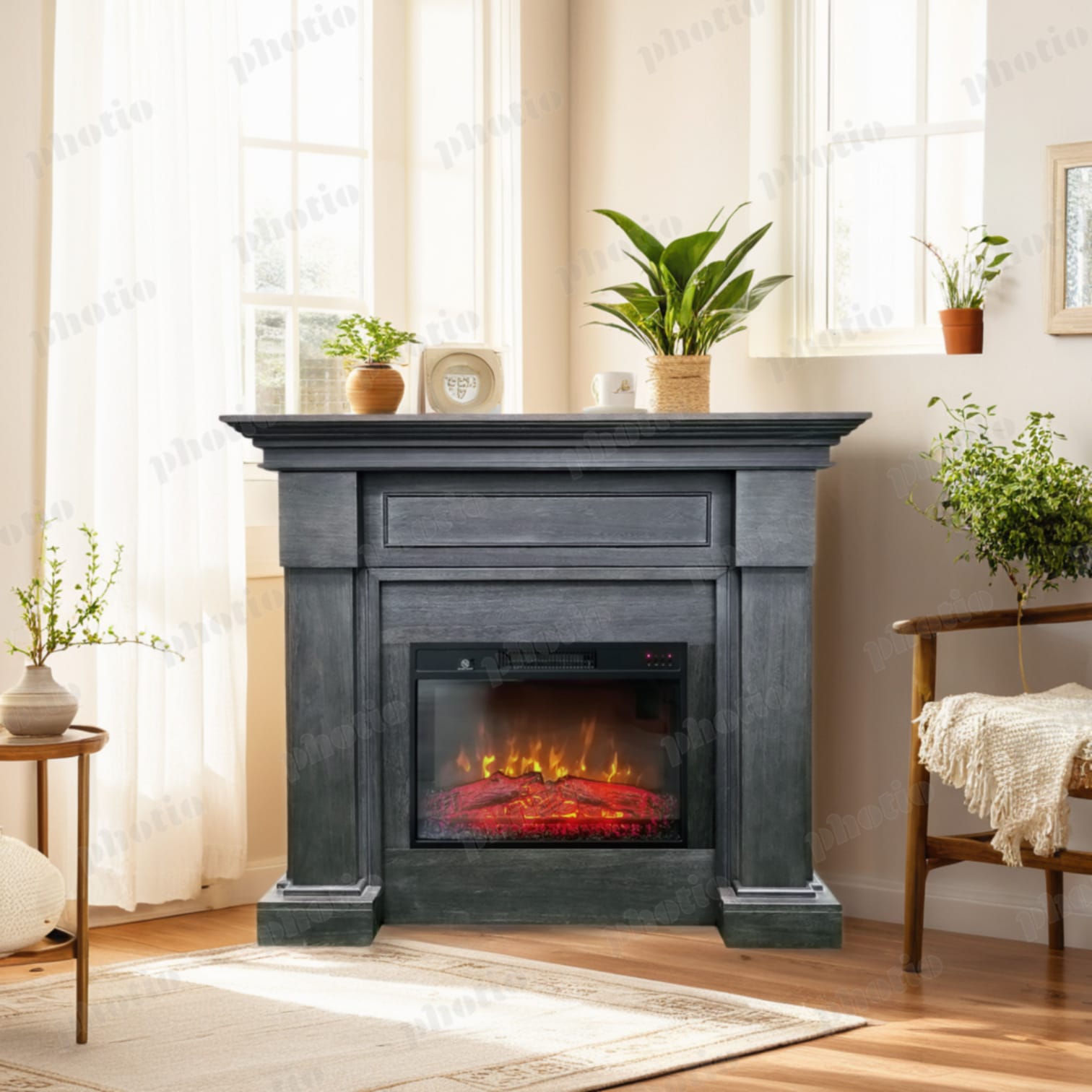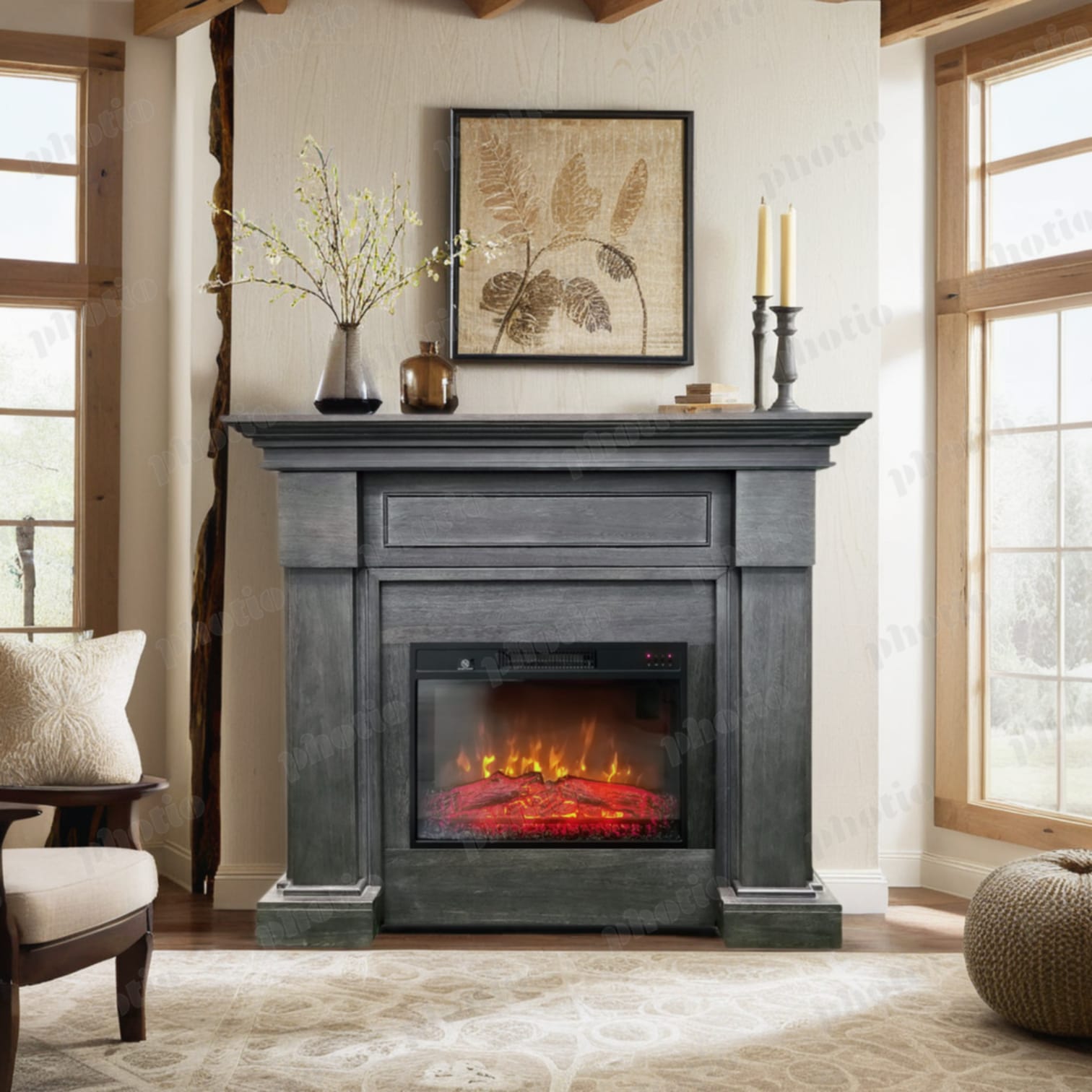 - Efect de flacără 3D și realism clasic cu bușteni arzând și mulaj din jar;