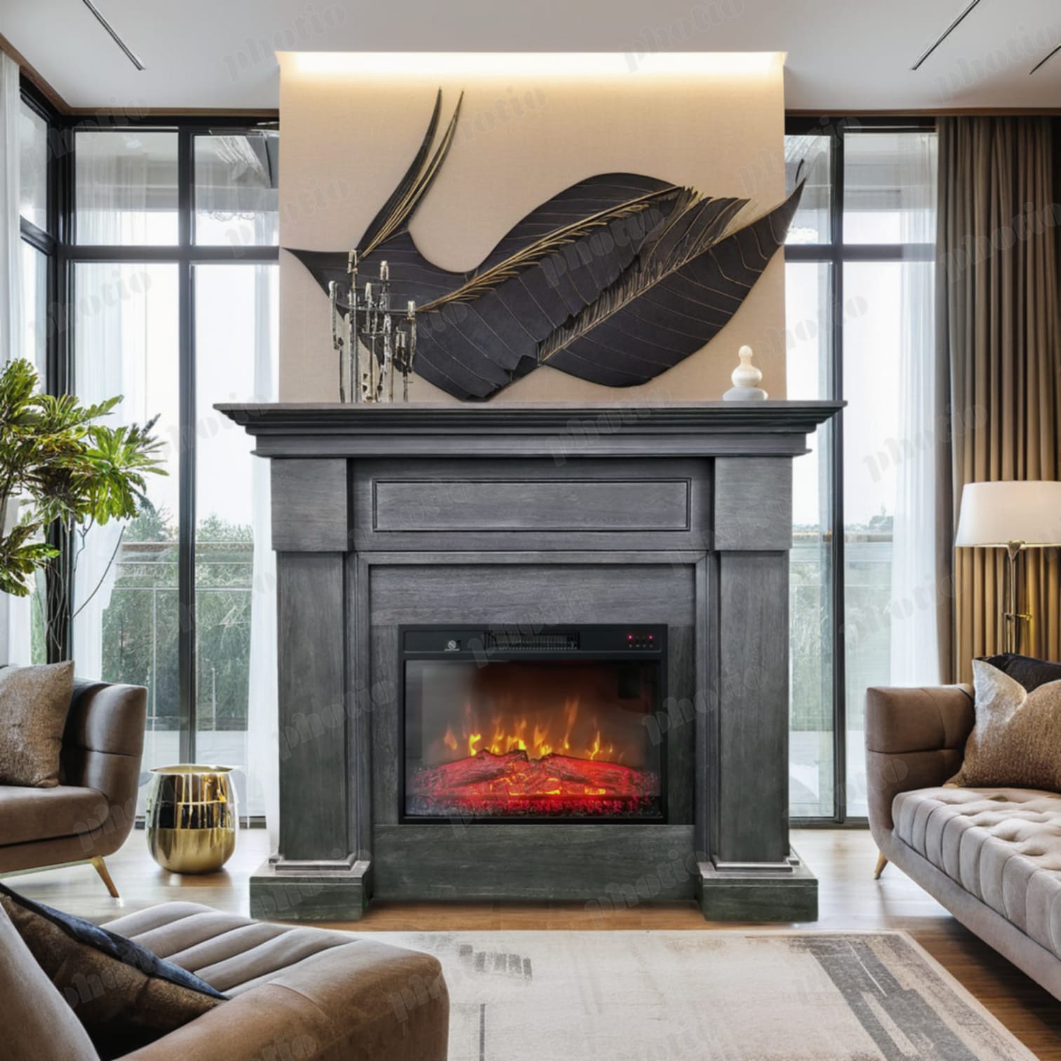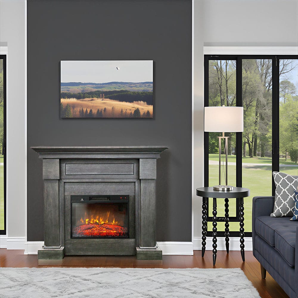 Semineu electric 3D ElectricSun MONTENEGRO gri, cu sunet, 3 culori, Wi-Fi cu APP internet, L127xH107cm