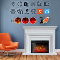 Semineu electric 3D ElectricSun SONIA alb, cu sunet, 3 culori, Wi-Fi cu APP internet, L120xH102cm