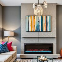 Proiectează-ți șemineul pentru a se potrivi stilului tău! Semineul vine si cu 3 tipuri de elemente decorative. Cristalele de sticlă, pietrele albe și ramurile pot fi folosite ca decor după dorință.