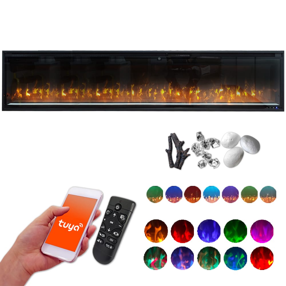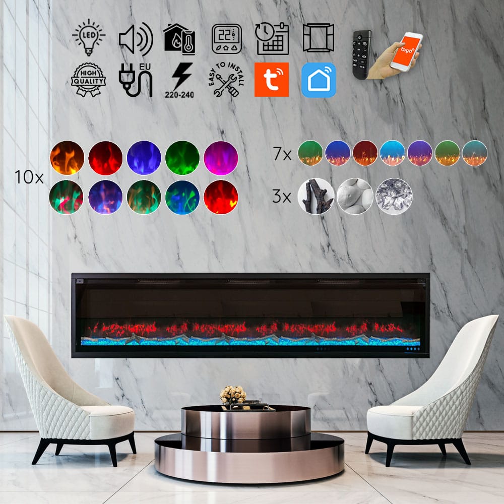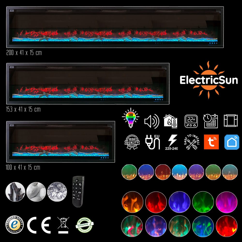 Semineu electric 3D ElectricSun VERSALYS XXL, pe perete, podea sau incorporabil, cu sunet, 10 culori, Wi-Fi cu APP internet, L200xH41cm